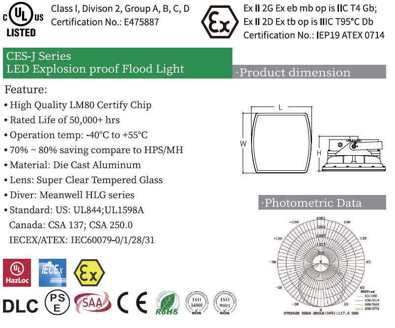 LED EXPLOSION PROOF FLOODLight, J SERIES. ATEX IECEX UL844